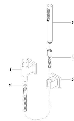 Brauseschlauch 3/8″ x 1/2″ x 1250 mm, Wandanschlussbogen 1/2″ mit