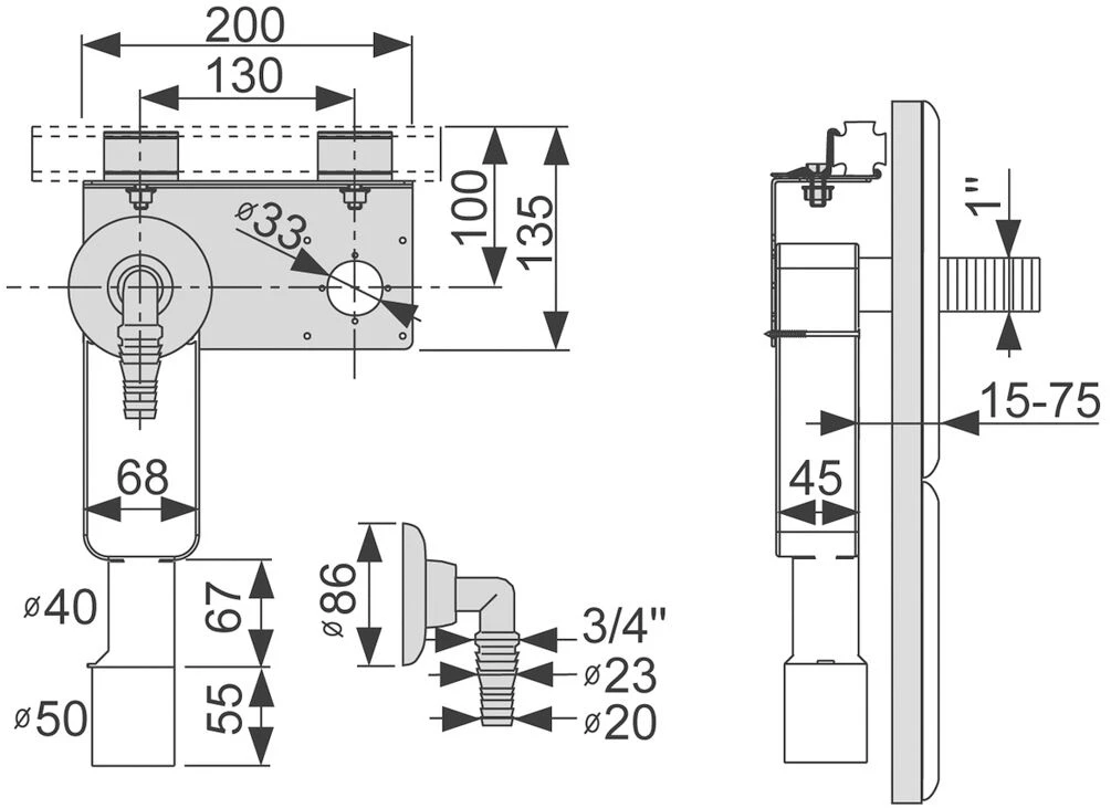 - Wandeinbausiphon für Waschmaschine DN 40/50